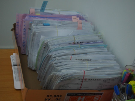 財(cái)務(wù)辦公室里大大小小的文件筐里