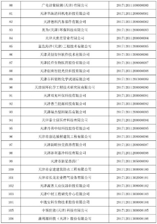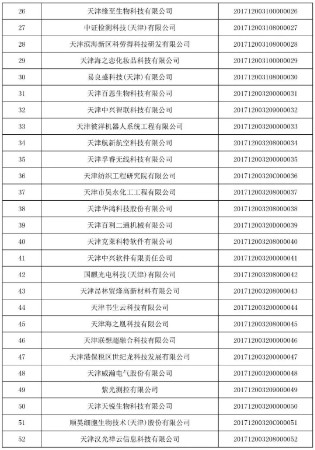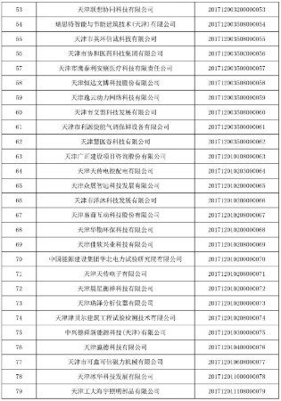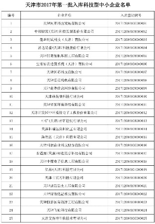 天津市2017年第一批入庫國家科技型中小企業(yè)名單公告