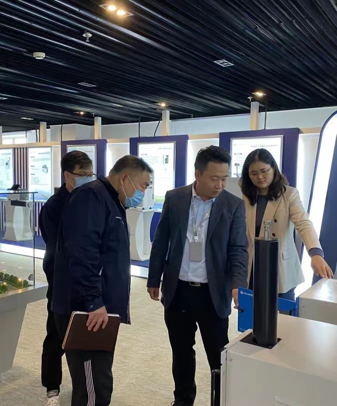 在展廳,劉金星經(jīng)理詳細介紹了同陽科技的研發(fā)成果,計量院領導對同陽近年來取得的科技創(chuàng)新成果給予了高度評價。雙方就目前同陽科技遇到的一些問題及訴求進行了深入交流。針對同陽科技提出的困難與問題,魏院長表示會深入研究,盡快幫扶解決。
